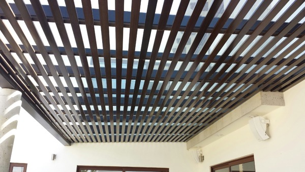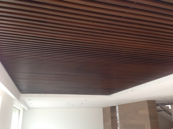 El costo por metro cuadrado de ese plafón (tipo marimba) en madera de banak, barnizado y colocado es de $1,100. Podría haber imprevistos por trabajos previos que se pudieran requerir (limpieza, demoliciones, pintura, etc)