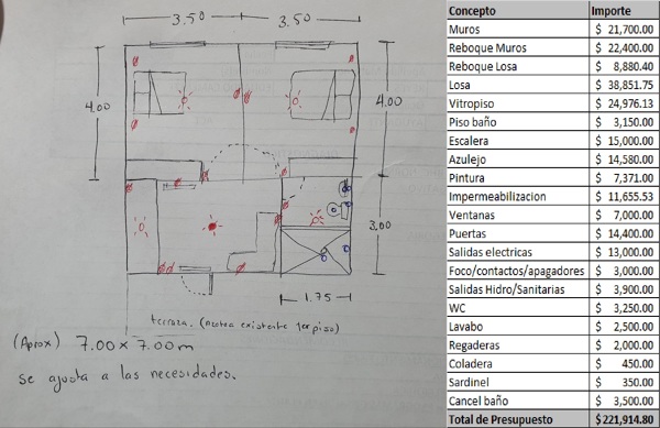 ¡Buen día! Me gustarían ampliar un segundo piso en mi casa que incluyan dos recámaras, un baño, sala de estar pequeña y una terraza.