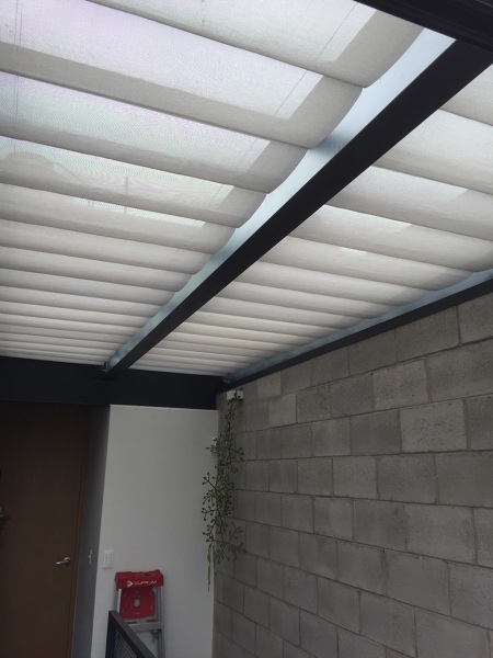 Lo normal si es intemperie, sería una palilleria. Es un como un toldo con un material que se llama membrana, que aguanta el sol y la lluvia.